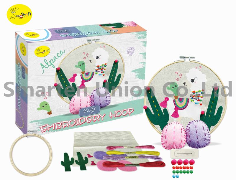 The included wooden embroidery hoop becomes the frame to hang and display your lovely artwork!